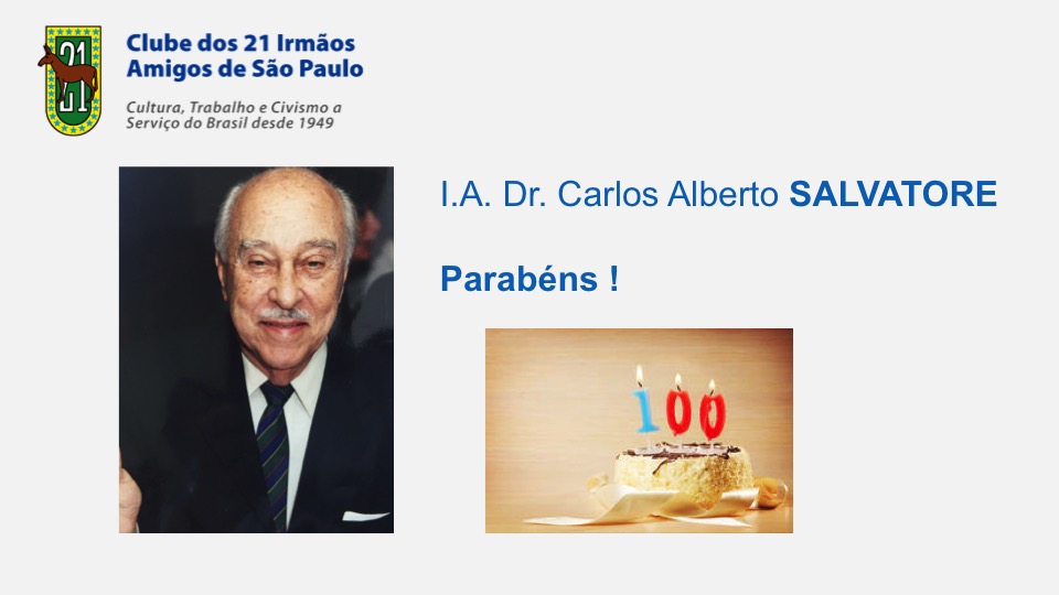 Parabenizamos o I.A. Prof. Dr. Carlos Alberto Salvatore pelos seus 100 anos com uma homenagem no dia 11 de abril de 2017.